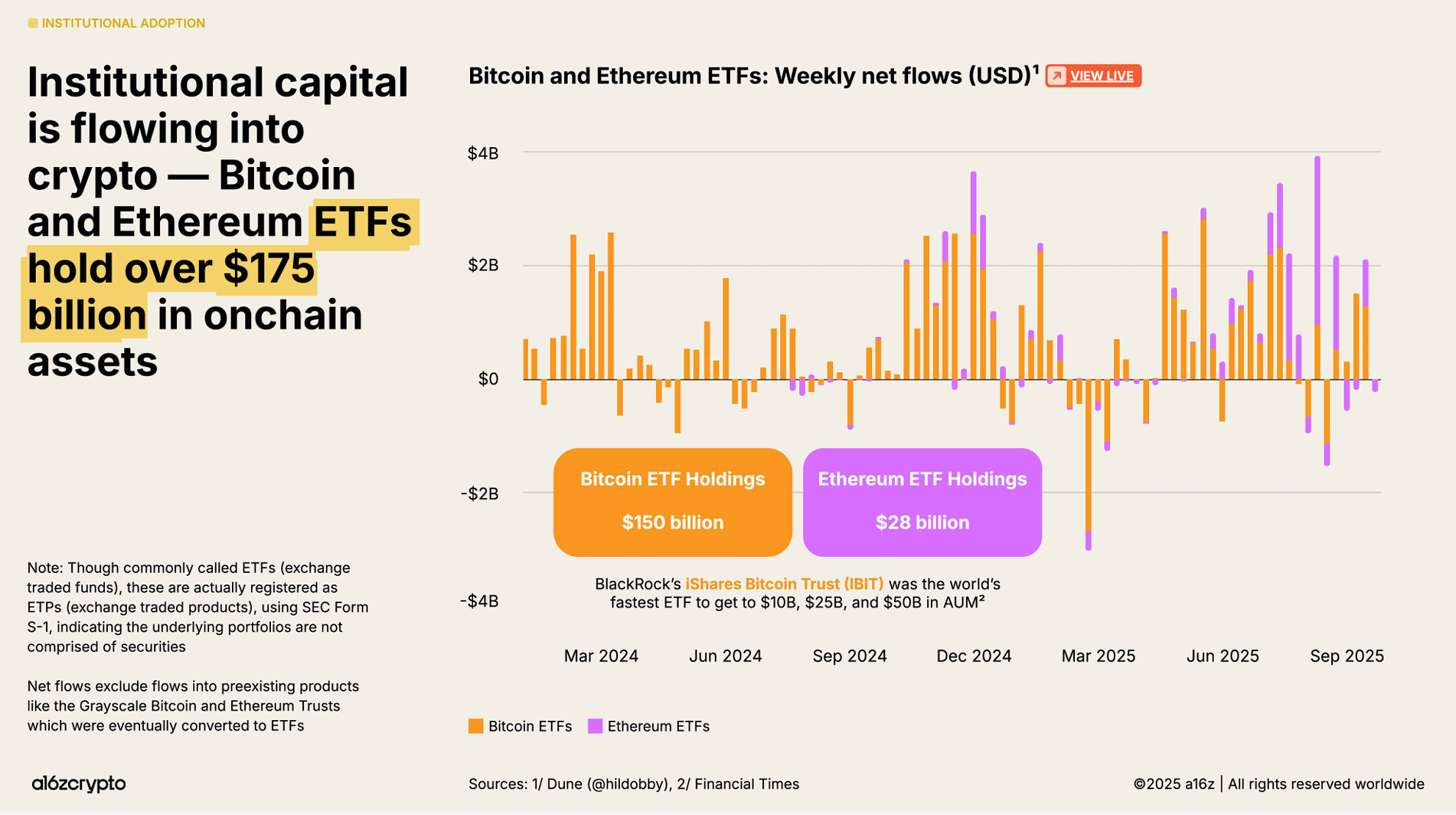 According to the report, more than $175 billion has flowed into crypto ETFs since the spring of 2024.