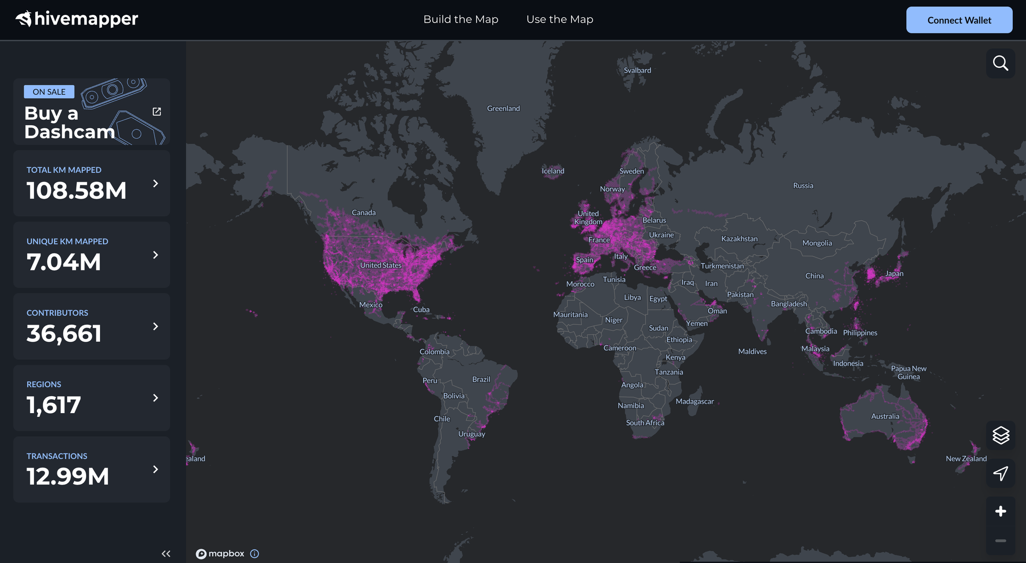 Officially launched in the end of 2022, the Hivemapper network has grown rapidly in terms of overall users, contributors, and overall coverage. As of early 2024, it looks like there are more than 36,000 network participants who have mapped over 67 million miles of roads across the planet, but particularly in United States, Canada, Western Europe, Australia, and some South America.
