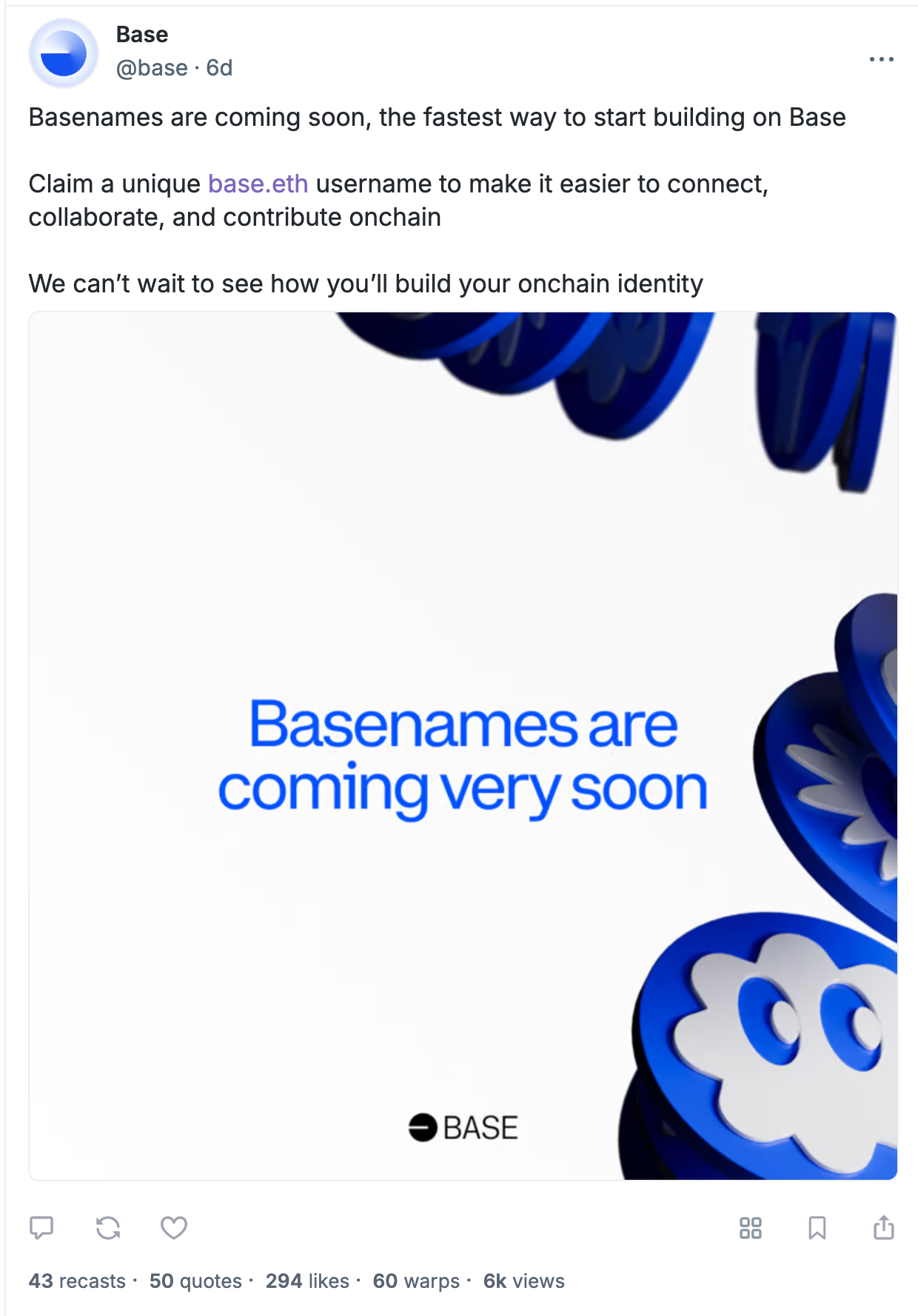 There's a lot of chatter about the rollout of the Base naming service.